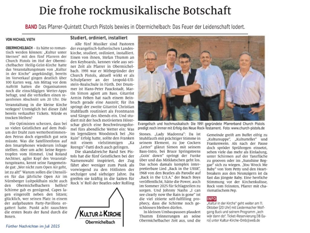 Am Samstag 11.Oktober 2025 20:00 Uhr in der Kirche in Obermichelbach
